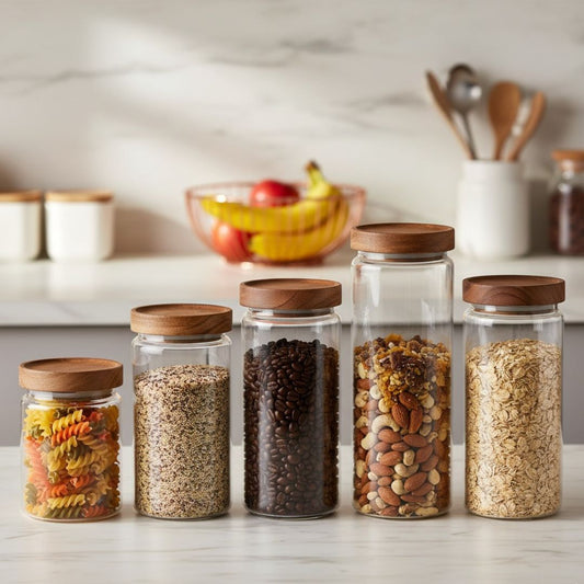 Set De Recipientes Organizadores En Vidrio Y Madera X5