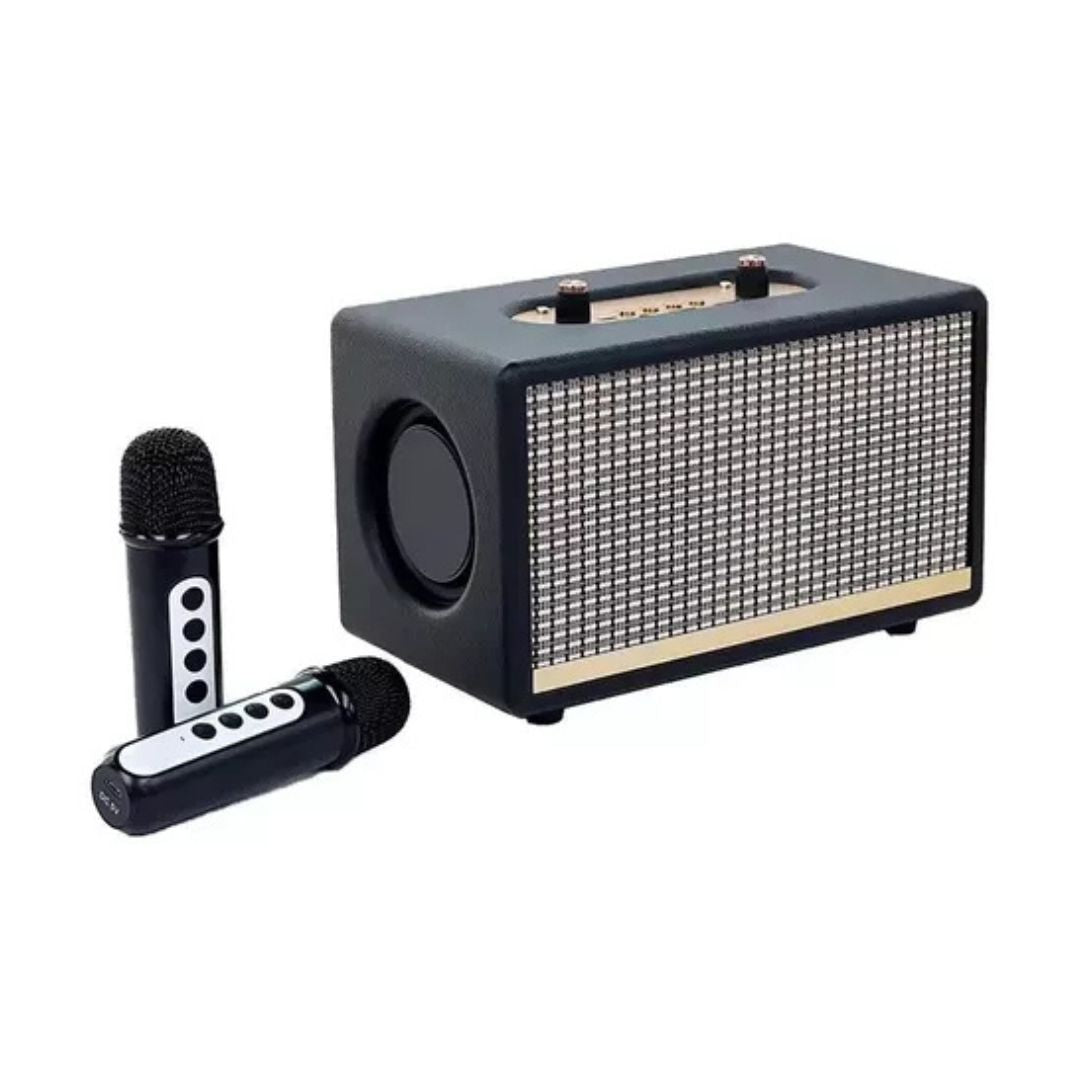 Escucha tu música favorita al mejor estilo Marshall con nuestro Parlante inalámbrico con micrófonos, además de decorar tus espacios con su diseño retro, podrás también armar un parche de karaoke y disfrutar de buena música.
