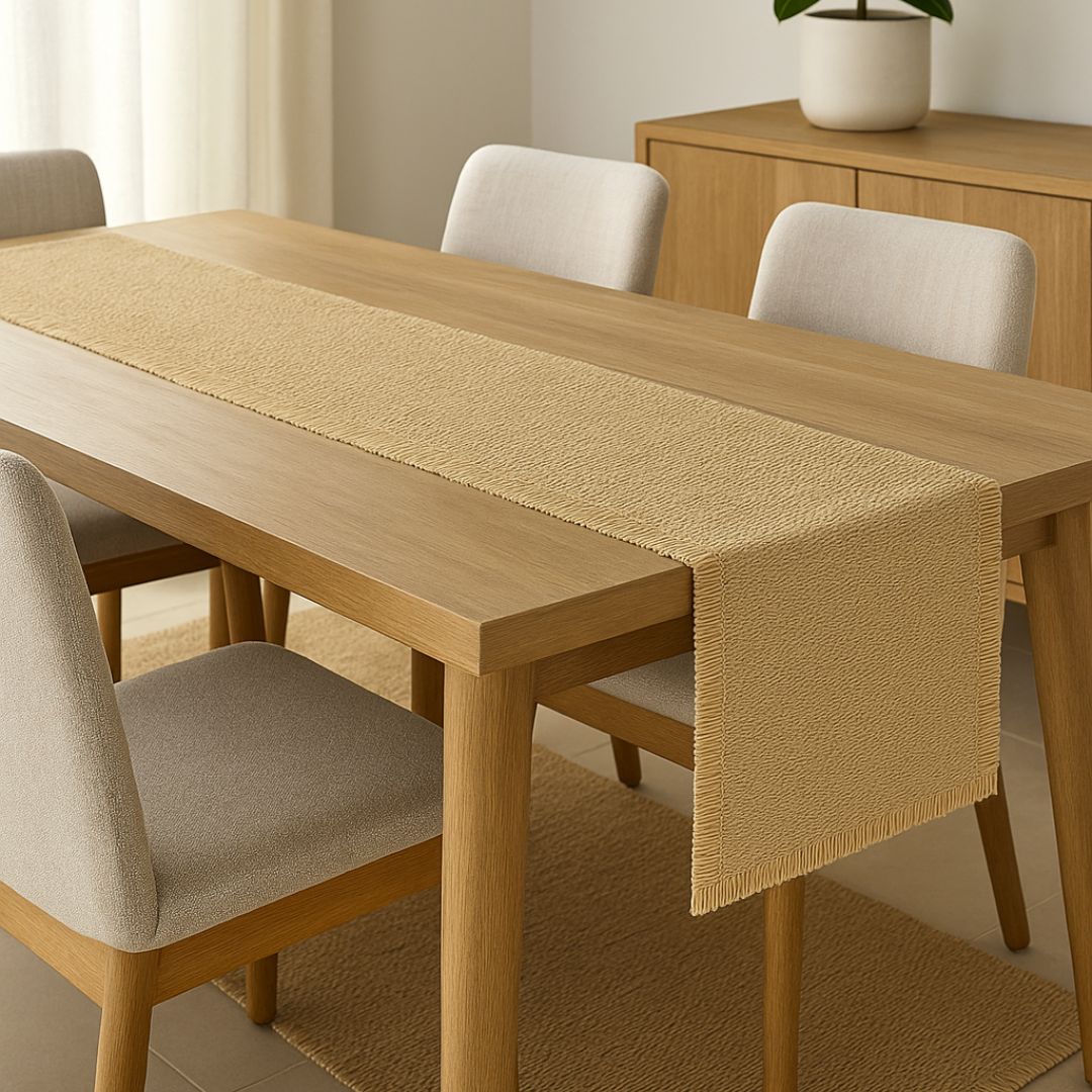 Su textura tejida y acabado artesanal rústico chic que combina perfectamente con ambientes modernos, bohemios o campestres es ideal para resaltar las vajillas y proteger la superficie de la mesa, es el complemento perfecto para cenas especiales o uso diario. Resistente, versátil y con ese encanto natural que nunca pasará de moda.