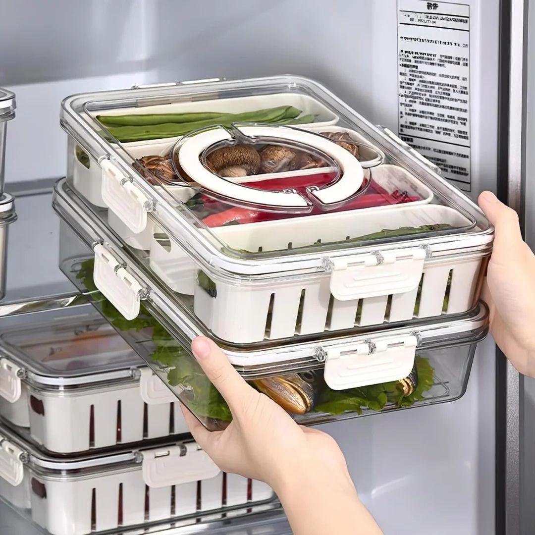 Nuestros Organizadores de nevera con escurridor solucionan este problema, manteniendo todo en su lugar, fresco y sin exceso de agua. Gracias a su diseño con base escurridora, permiten que tus frutas, verduras y otros alimentos se conserven por mucho más tiempo.