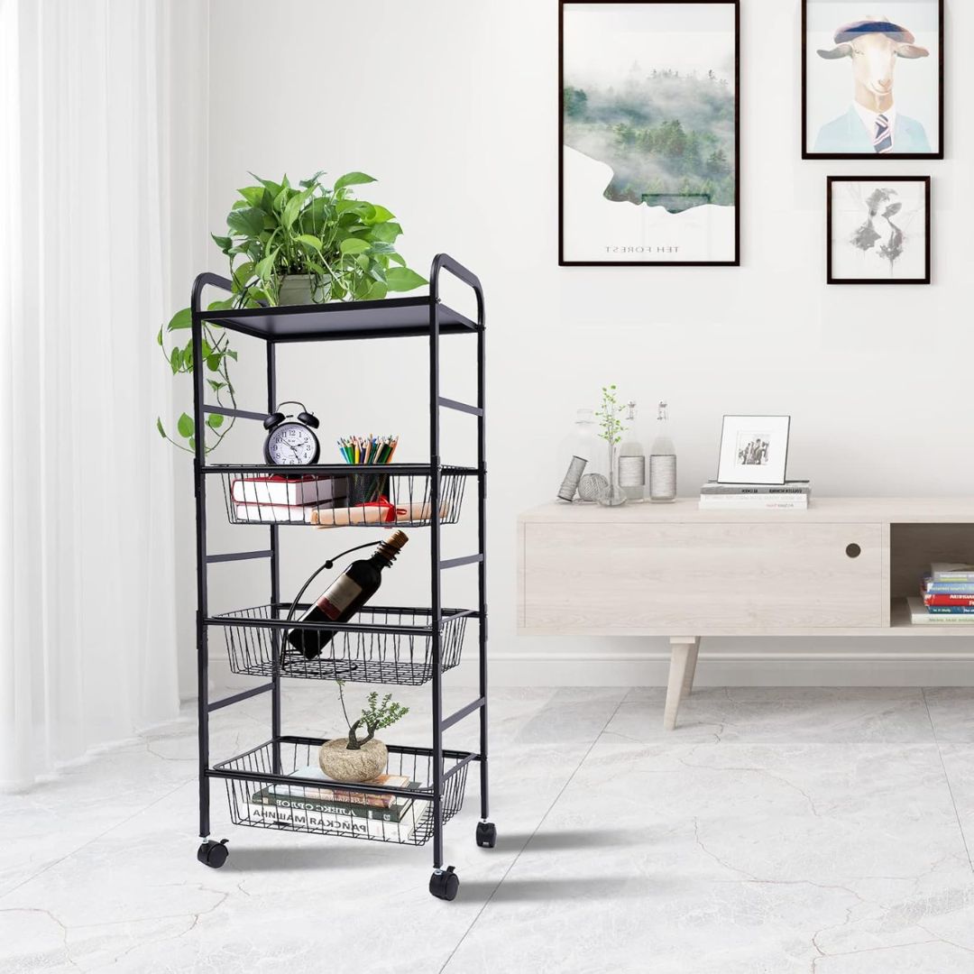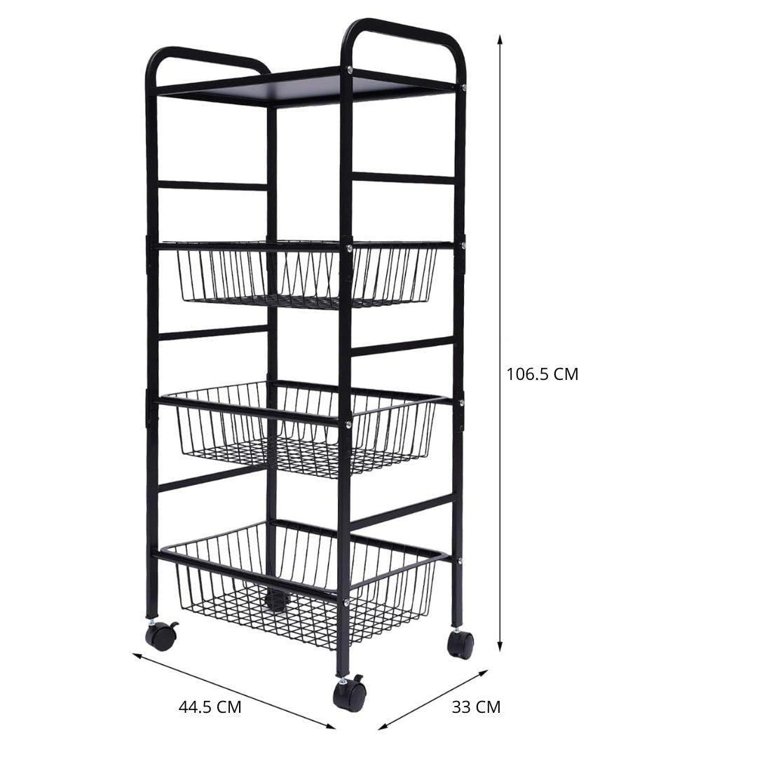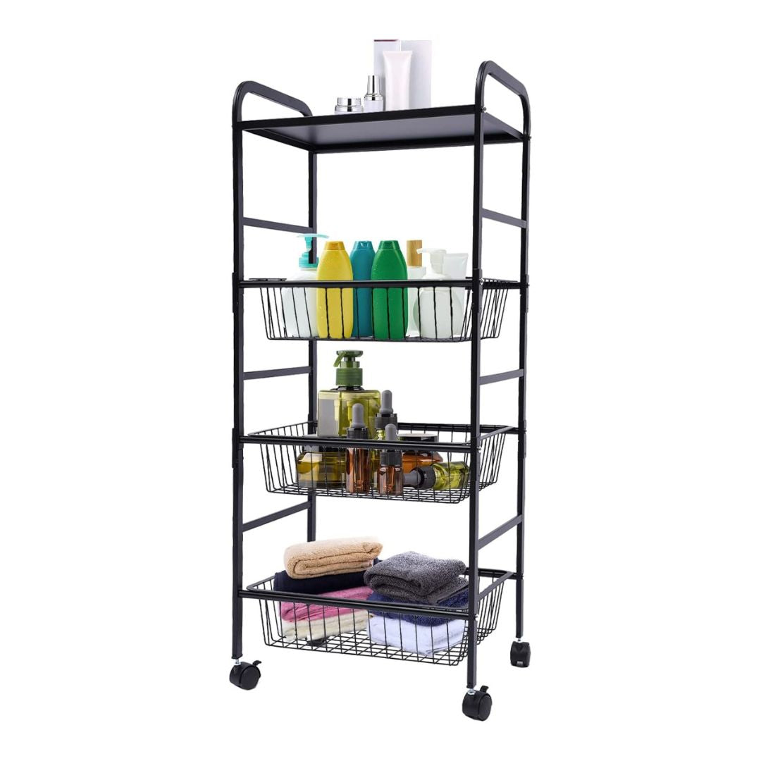 Este Estante organizador tiene una estructura de 4 niveles y las cestas de cada nivel tienen suficiente espacio para almacenar productos de cocina, baño u otros artículos del hogar. Además, la parte superior se puede utilizar como repisa, aprovechando al máximo el espacio; con sus 4 ruedas giratorias 360° (2 bloqueables) podrás desplazarlo sin ningún problema. Gracias a su formación vertical, hace que el hogar esté más ordenado y limpio.