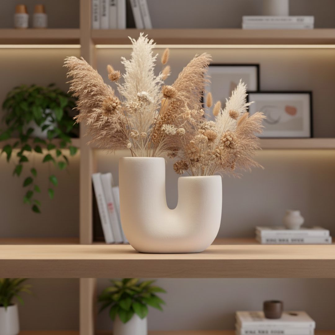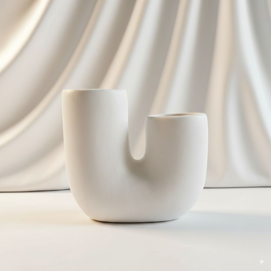 Nuestro Jarrón decorativo Urus destaca por su silueta minimalista con forma asimétrica en U. Su acabado liso lo convierte en una pieza sofisticada que aporta equilibrio y estilo contemporáneo a cualquier espacio. Ideal para lucirlo solo como objeto artístico o acompañado de flores secas, naturales o ramas decorativas. Perfecto para salas, estudios o ambientes minimalistas que buscan estilo.