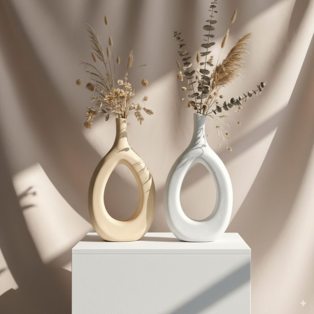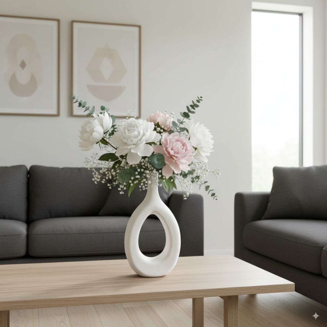 Inspirado en la pureza y elegancia, nuestro Jarrón decorativo Ovo destaca por sus líneas suaves y su diseño minimalista. Es perfecto para realzar la belleza de flores naturales, secas o para lucirlo solo como pieza de arte. Su estilo versátil lo convierte en un complemento ideal para hogares modernos, nórdicos o contemporáneos, aportando un toque de sofisticación a tus espacios.