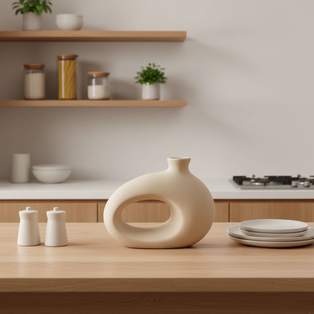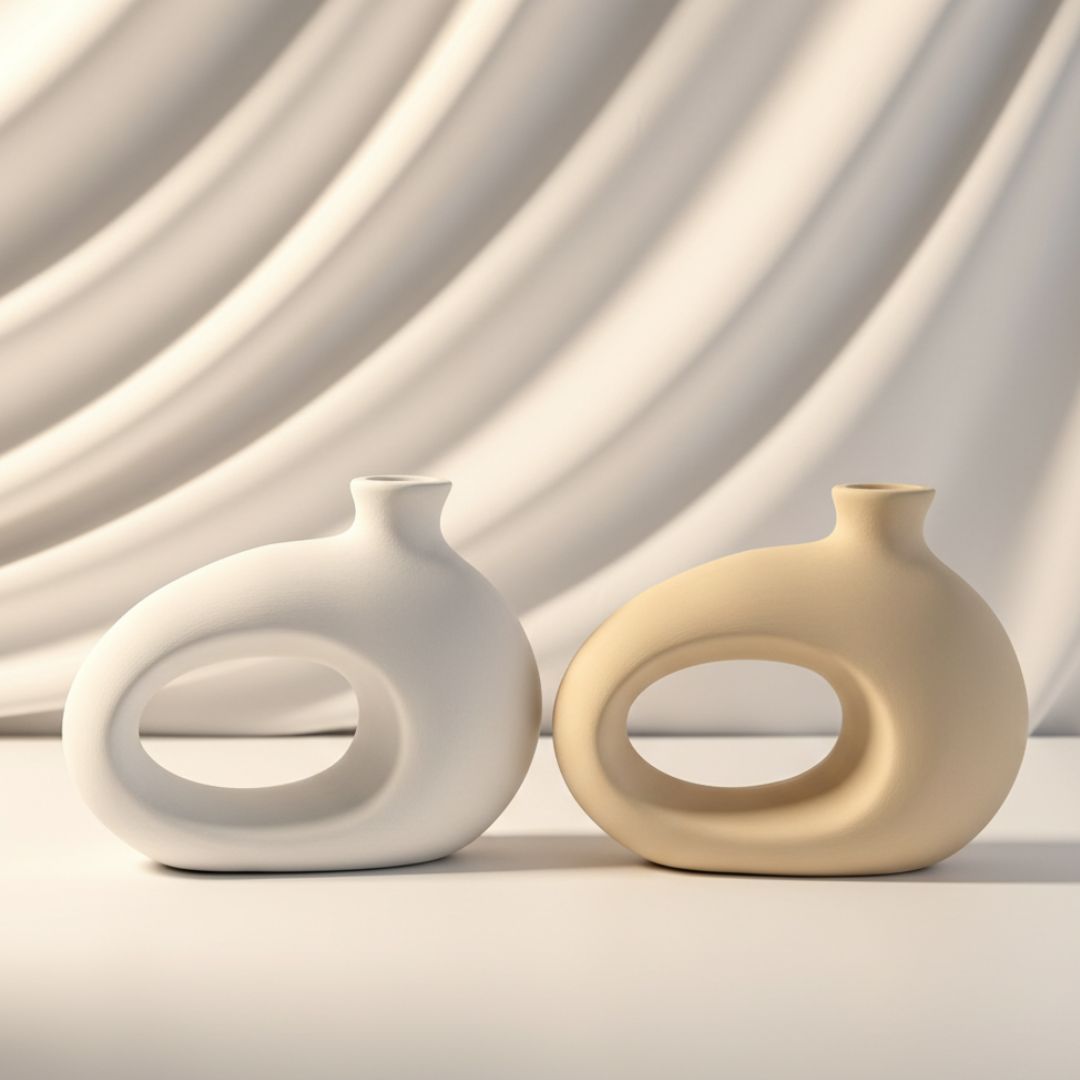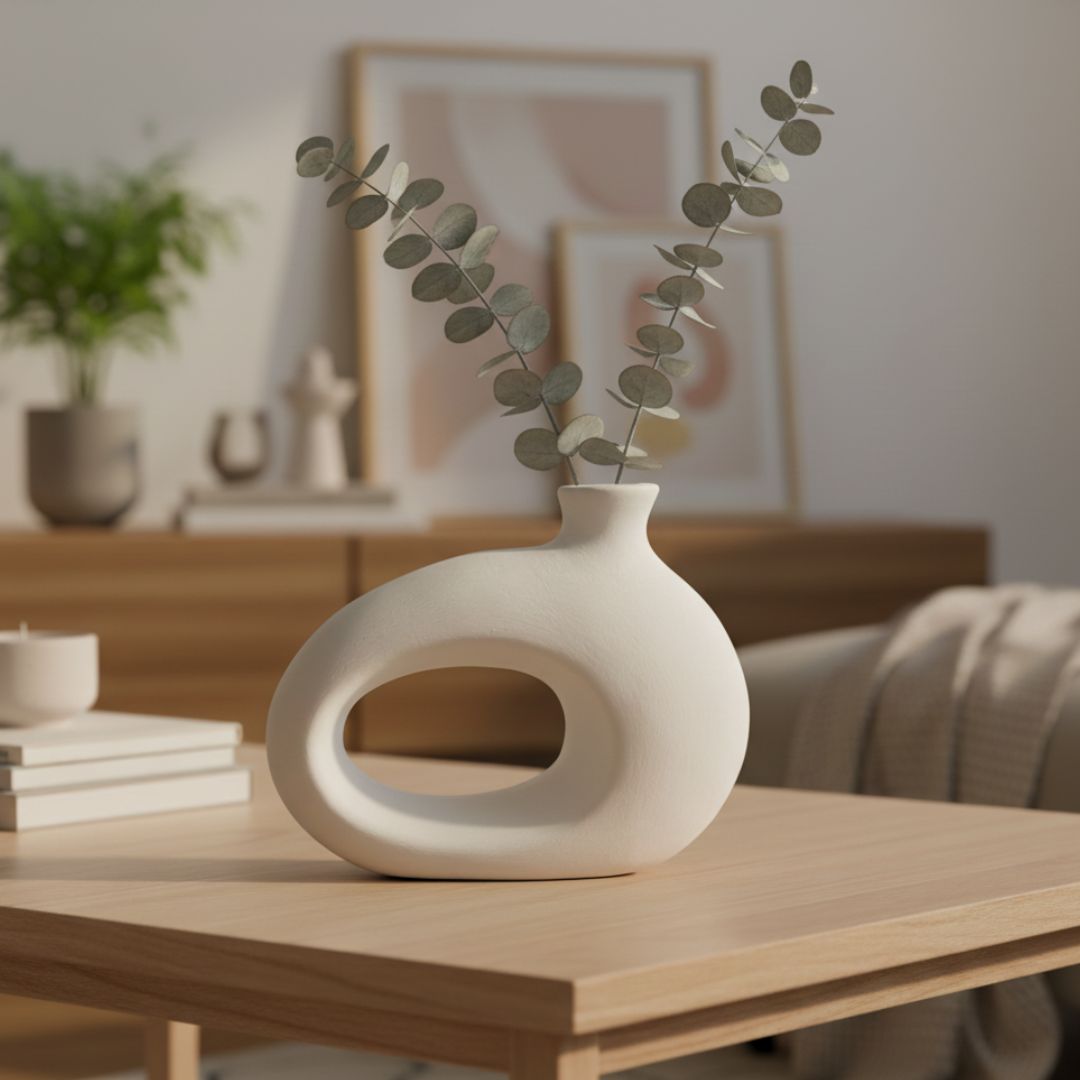 Eleva el estilo de tus espacios con este Jarrón decorativo Nuvia, su diseño con forma ovalada y acabado mate transmite sofisticación y armonía. Su abertura central y su estilo escultórico lo convierten en una pieza única, ideal para resaltar en salas, comedores, estudios u oficinas.