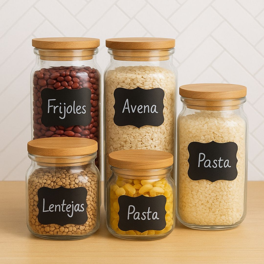 Nuestro Juego de etiquetas x24 unidades es perfecto para organizar y personalizar frascos, recipientes, botellas y más. Su superficie permite escribir y borrar fácilmente, brindándote una solución práctica y estética para ordenar todo. Son ideales para cocina, oficina o fiestas. (Incluye marcador).