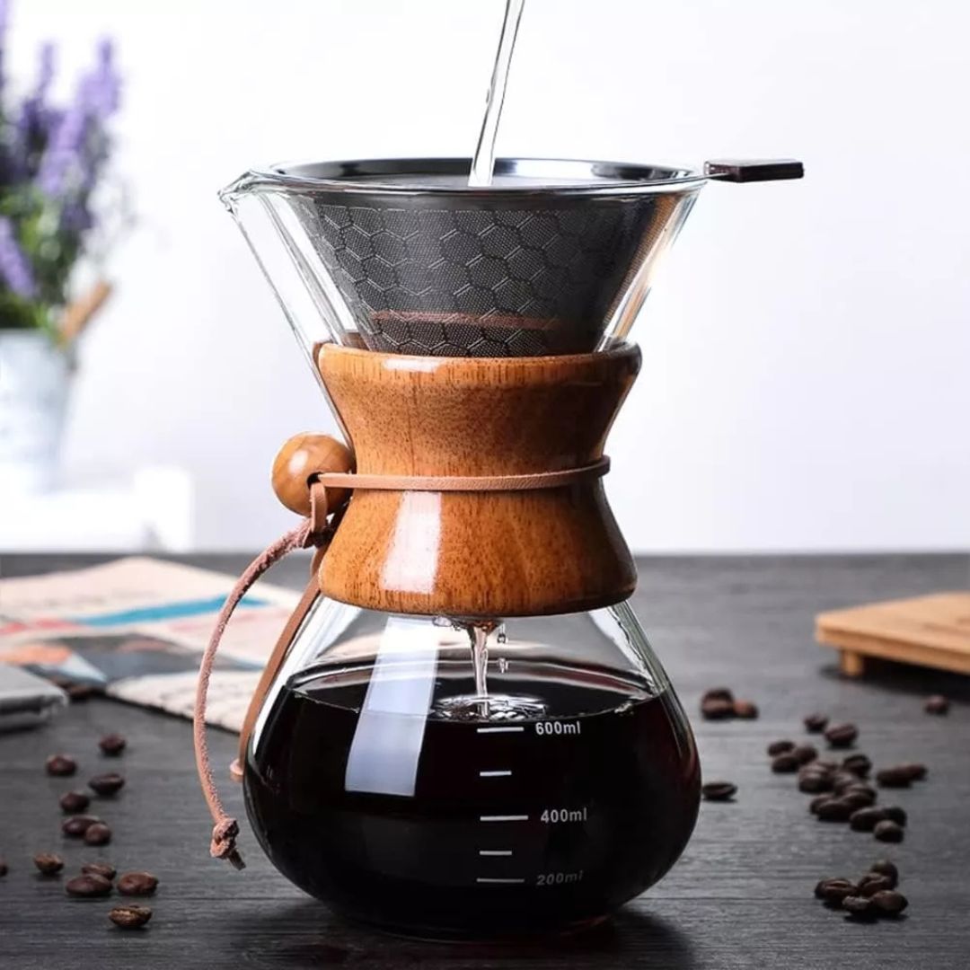 El método Chemex, gracias a su filtro más grueso y diseño elegante, permite una extracción limpia y uniforme, resaltando notas suaves y balanceadas en cada taza. Su proceso de vertido controlado optimiza la saturación del café, logrando un sabor puro y sin sedimientos.