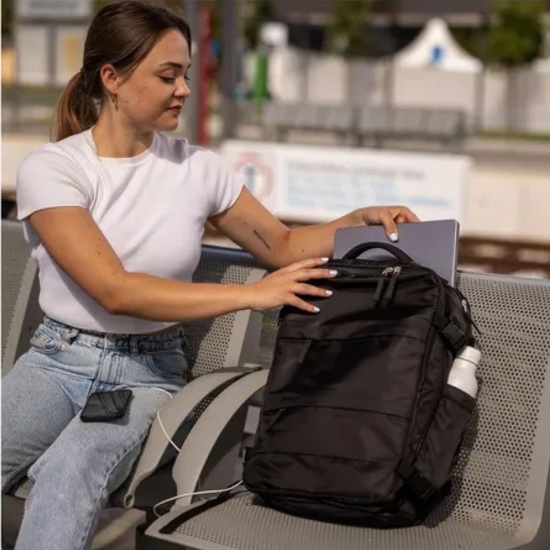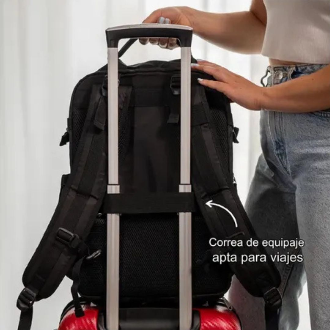Cuenta con puerto de conexión USB integrado, permitiéndote cargar tus dispositivos electrónicos mientras te desplazas y disfrutas de tu entorno. Sus correas ajustables y acolchadas te ofrecen mayor comodidad y junto con el respaldo transpirable hacen el conjunto perfecto distribuyendo el peso de manera uniforme para que puedas llevarlo durante horas sin molestias. Tiene espacio para zapatos, bolsillo exclusivo impermeable y espacio funcional ajustable para tu botella favorita. Es el complemento perfecto para tus viajes o tu día a día.