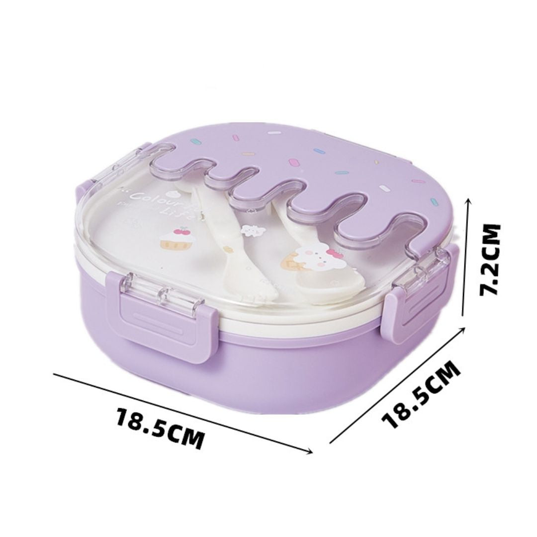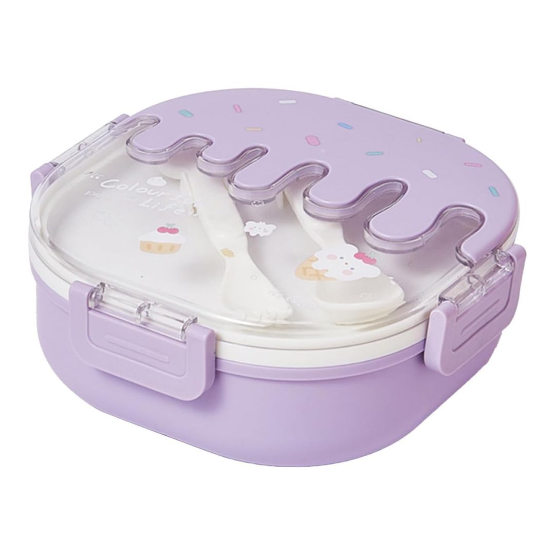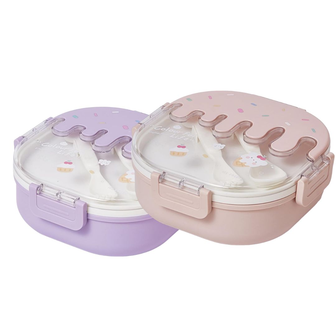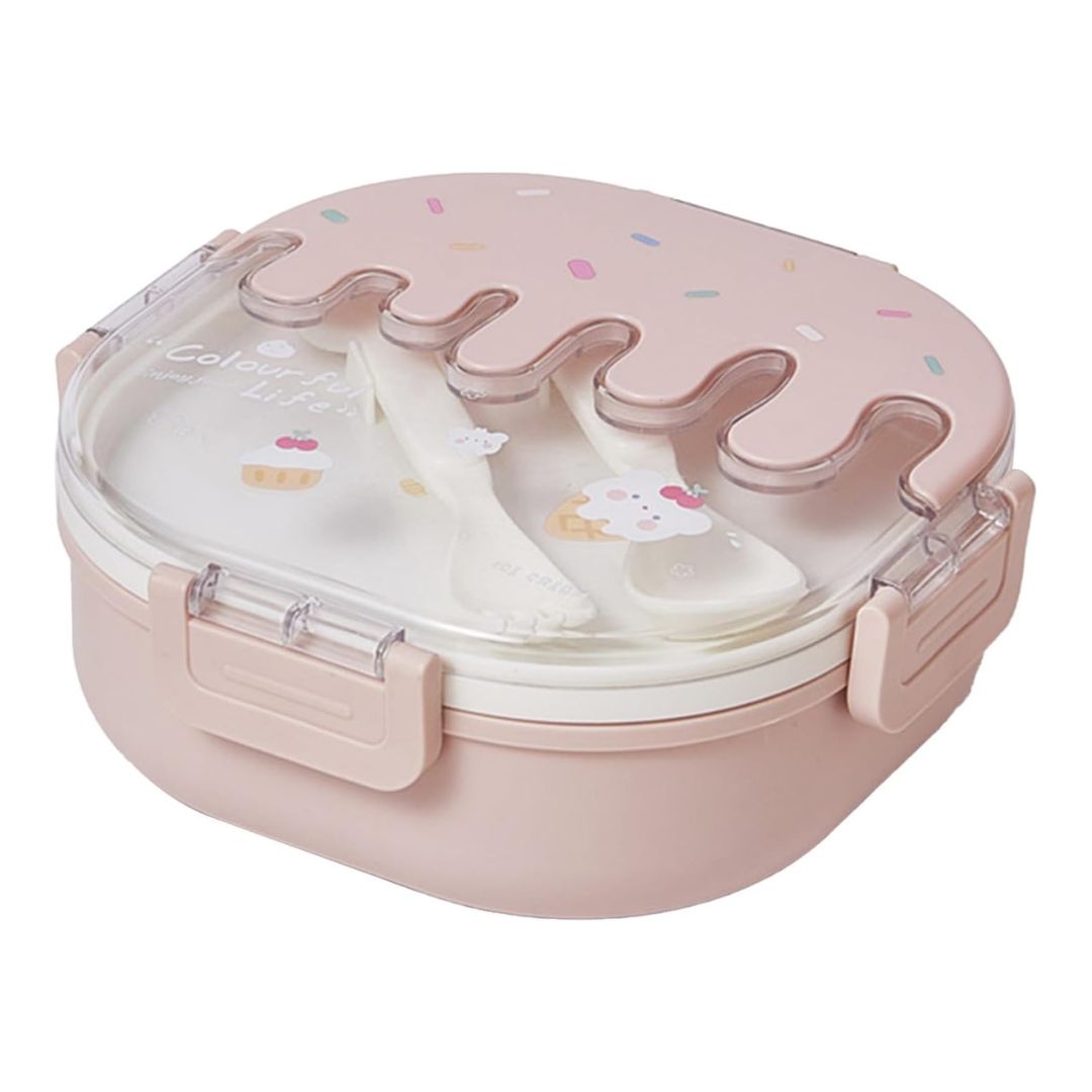 Este Portacomida con cubiertos y diseño de helado cuenta con compartimientos individuales que mantienen cada alimento en su lugar, conservando el sabor y la textura como recién hecho por mamá.