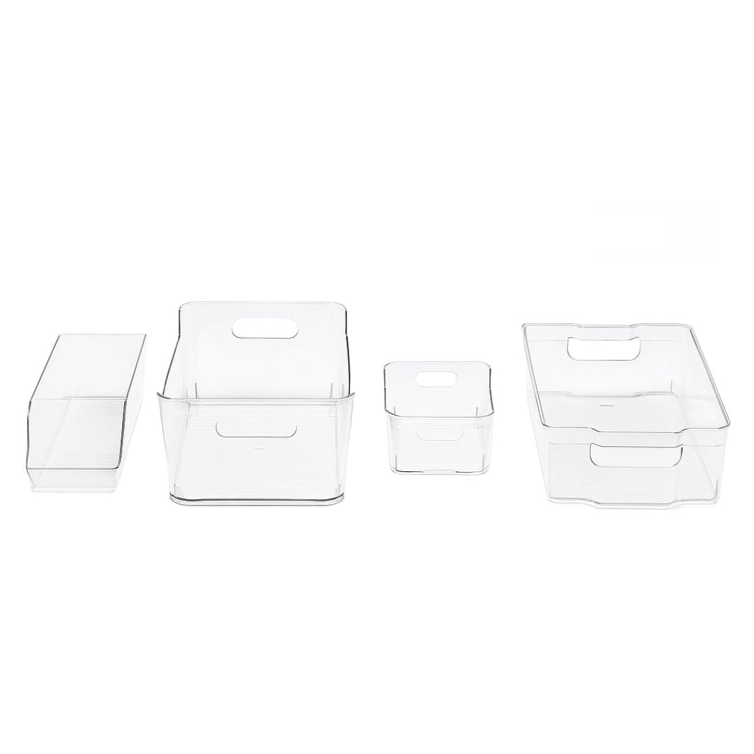 Con este novedoso Set de organizadores en acrílico , compuesto por 4 recipientes , podrás almacenar frutas, verduras, latas, envases y paquetes de una manera ordenada y evitar la contaminación visual, alcanzando todo lo que necesitas y cuidando cada alimento.