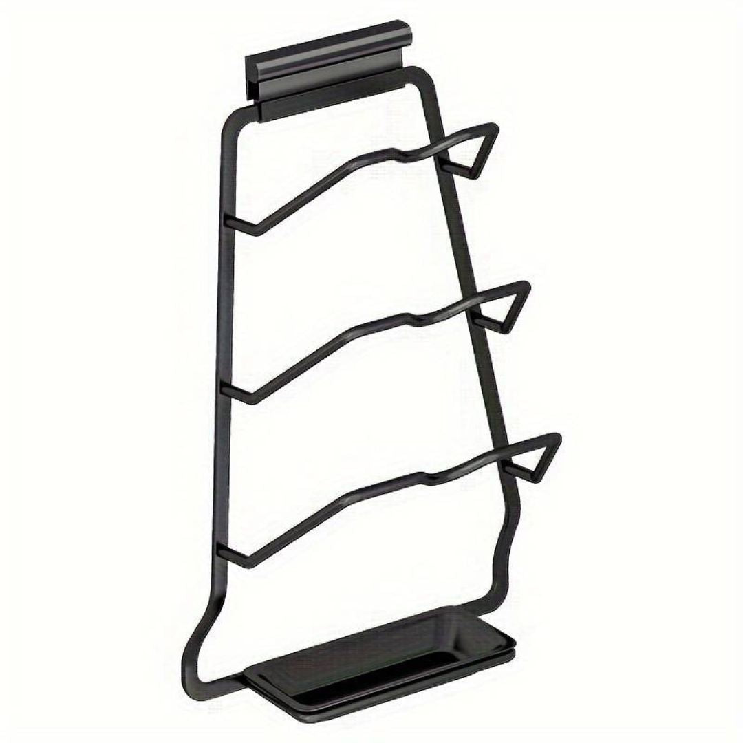 Este Soporte Para Tapas tiene un sistema de montado en superficie e incluye bandeja de drenaje, tiene gran capacidad para ollas, tablas de picar y hasta sartenes. Organiza tus complementos de cocina de la manera más práctica y disfruta de un espacio libre y limpio.