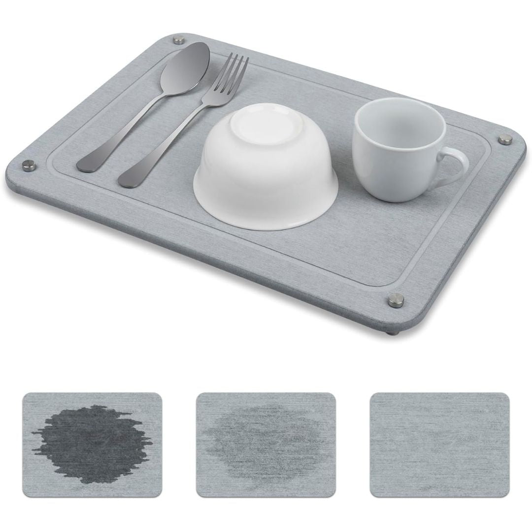 Mantén tu cocina limpia y libre de humedad con este Tapete escurridor fabricado en piedra diatomita, un material natural conocido por su alta absorción y secado instantáneo. Gracias a sus patas elevadas, permite una mejor circulación de aire, evitando la acumulación de agua y malos olores.