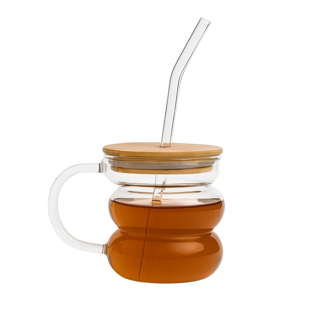 Disfruta tus bebidas favoritas con estilo y comodidad con nuestra Taza Asimétrica de vidrio, combina un diseño súper aesthetic con funcionalidad, tiene tapa hermética para evitar derrames y pitillo en vidrio para beber sin esfuerzo. Es ligera, práctica y perfecta para acompañarte en la oficina, en casa o en movimiento.