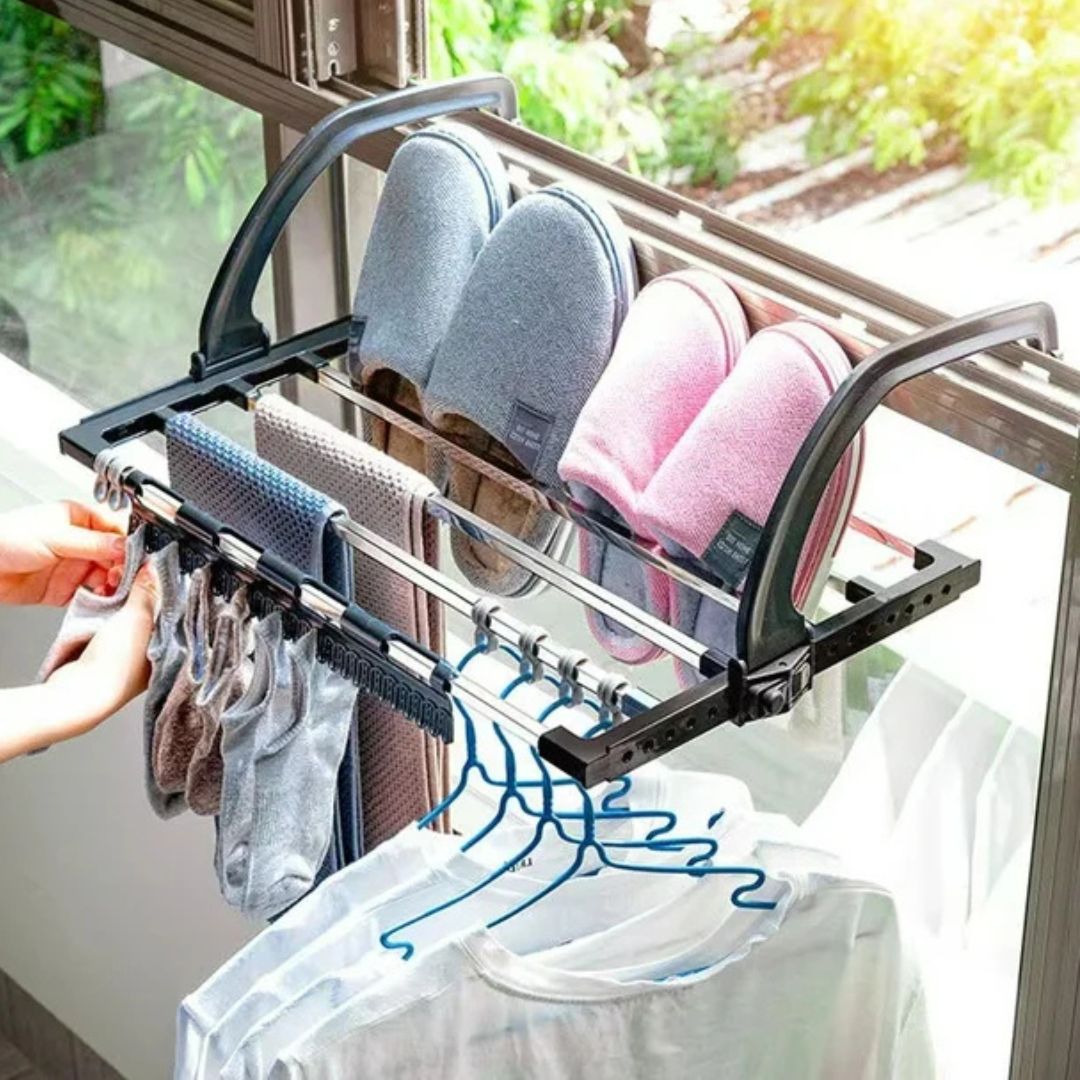 Nuestro Tendedero, de ropa colgante, está diseñado para aprovechar al máximo cada rincón. Se cuelga fácilmente en puertas, ventanas, barandales o dentro del baño, y cuando no lo usas se pliega para que no te estorbe. Fabricado con materiales resistentes y livianos, soporta varias prendas sin ocupar espacio en el piso. Es ideal para ropa delicada, toallas, ropa interior, medias, blusas y demás.