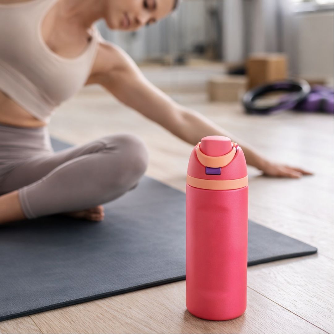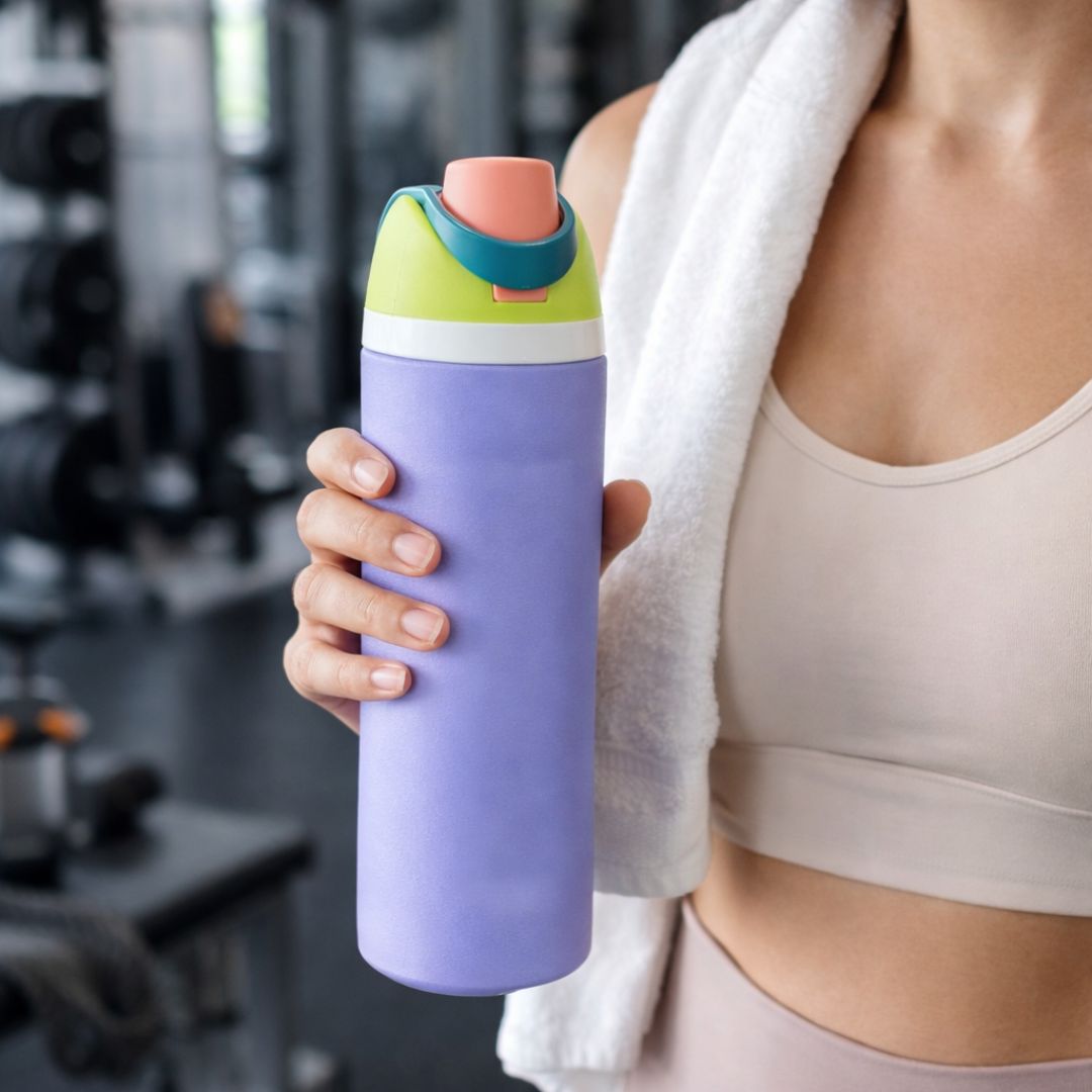 Su diseño con asa resistente facilita el transporte y su tamaño ideal cabe en la mayoría de porta vasos, perfecto para el carro o la caminadora.